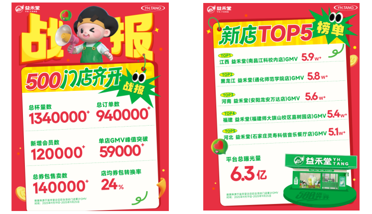 从开学季聚焦校园的精准渗透,到国庆假期面向全民的多维拓展,益禾堂展现出对消费节点的系统化运营能力。今年9月,品牌通过全国500家门店同步开业,精准布局文教区,在短短六天内实现饮品销售超134万杯,新增会员逾120万人,展现出精准的场景化运营成效。